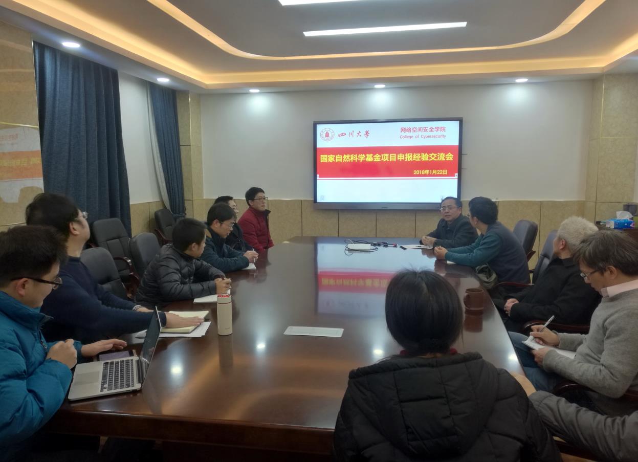 2018年1月22日下午,网络空间安全学院国家自然科学基金申请动员暨申报经验交流会顺利举行,网络空间安全学院领导秦燕、刘嘉勇、杨频,以及学院所有中青年教师和博士生代表等数十人参加了此次交流会,会议特别邀请了四川省学术与技术带头人、电子信息学院原副院长、博士生导师何小海教授,特聘副研究员李小伟老师分享了在国家自然科学基金项目申报与评审工作中的经验。会议由刘嘉勇副院长主持。
