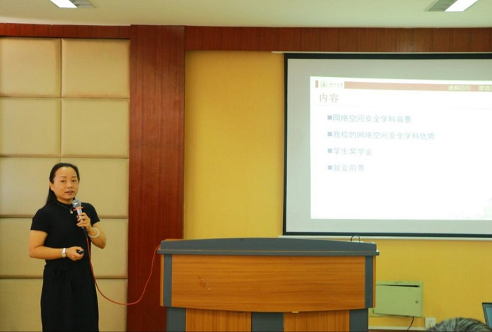 会上副校长许唯临教授首先对新同学的到来表达了热烈的欢迎,并向新同学介绍了学校与学院的办学历史、办学思路和发展历程,使新生对网络空间安全学院有了基本的了解。接着,许唯临教授从学院的悠久历史引入,进而谈到网络空间安全学院的发展概况。详细地为各位同学介绍了网络空间安全学院的各类人才培养方案、专业特色、对外交流等情况,让各位同学对学院的教学工作有了直接的感知,对学院人才培养体系有了初步的了解。