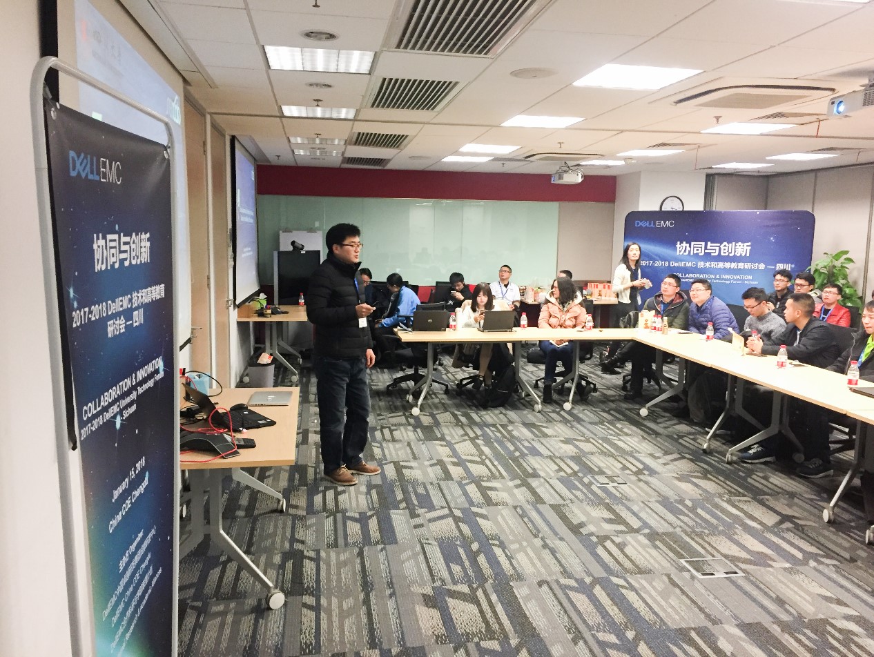 下午13:00,全体人员参与了“协同与创新-2017-2018 Dell EMC技术和高等教育研讨会”,来自DellEMC和各高校的专家给大家分享AI相关的前沿技术以及行业热点。我院黄诚老师在本次研讨会上为大家分享了将基于机器学习的恶意域名检测技术,引起了大家的广泛的兴趣与讨论。