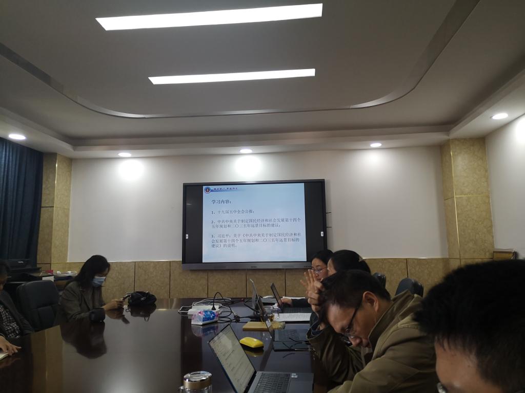 11月6日下午14:30,学院组织全院教职工开展政治学习,传达学习党的十九届五中全会精神,部署我院学习宣传和贯彻落实措施。会议在东三教503会议室举行,由副院长秦燕主持,全院教职工参加了本次学习。