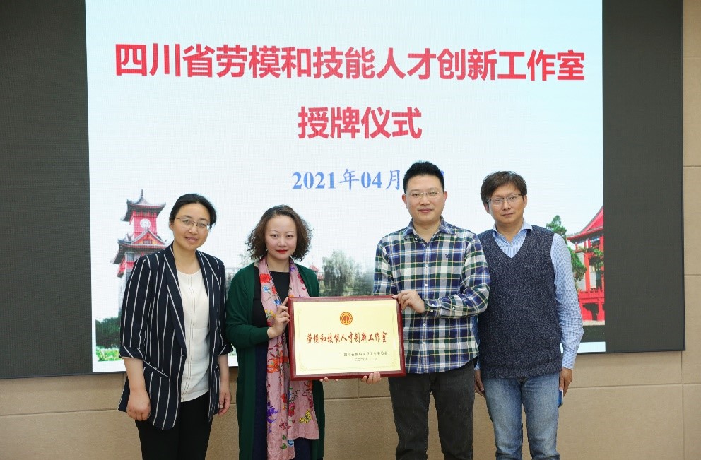 4月29日,校工会副主席冷泠一行到我院为杨进老师获批的四川省劳模和技能人才创新工作室授牌,学院副院长兼支部书记秦燕、副院长杨频参加授牌仪式。