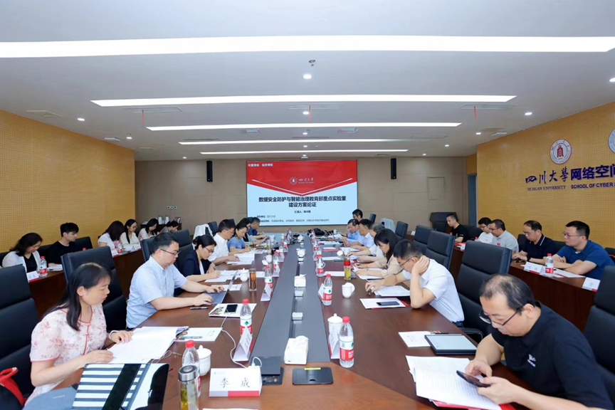 2023年6月18日,数据安全防护与智能治理教育部重点实验室在四川大学召开。会议邀请了中国工程院沈昌祥院士、孔志印院士,山东大学网络空间安全学院(研究院)院长王美琴教授,中国电子技术标准化研究院姚相振研究员,中国电科首席专家张建军研究员,战略支援部队信息工程大学魏强教授,绿盟科技集团股份有限公司高级副总裁叶晓虎担任论证专家组成员。四川大学校长助理何继业,四川大学科研院重大项目与基地管理部副部长陈显春,数据安全防护与智能治理教育部重点实验室主任陈兴蜀教授与实验室各方向带头人出席了论证会。