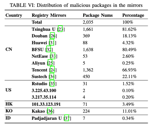 分析显示,74.81%的恶意包通过源码安装成功进入终端用户项目,从而增加了安全风险。同时,研究发现恶意软件包持续存在于全球PyPI镜像服务器中,其中超过72%的恶意软件包在被发现后仍长期存在于镜像服务器中。