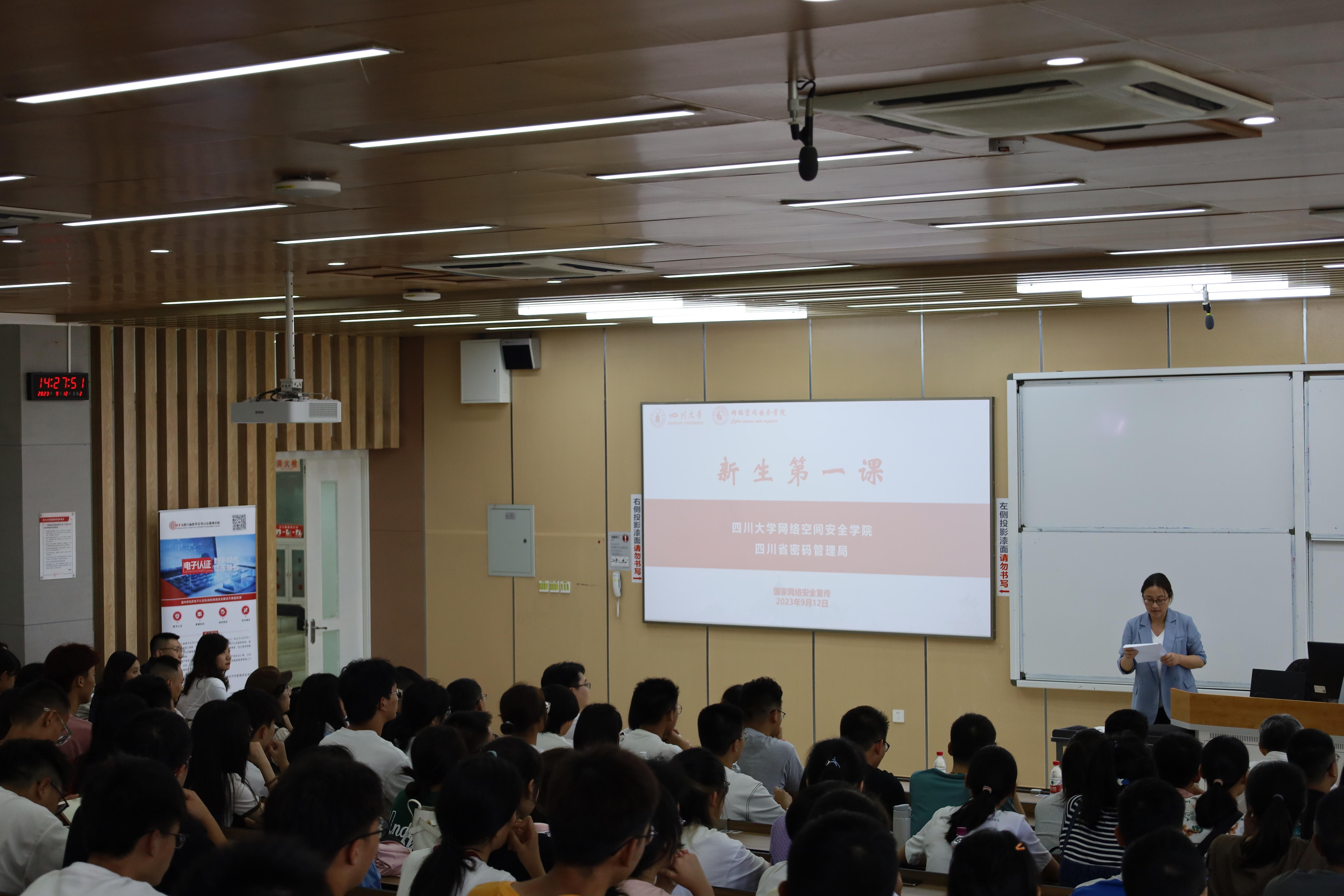新生第一课预示着新的开始,新的希望,是新生筑牢思想底蕴的关键时期。为广泛宣传网络安全、科普密码知识,2023年9月12日下午,四川大学网络空间安全学院携手四川省密码管理局,在江安校区综合楼C506举办了“新生第一课”讲座。学院党总支书记秦燕主持本次讲座。