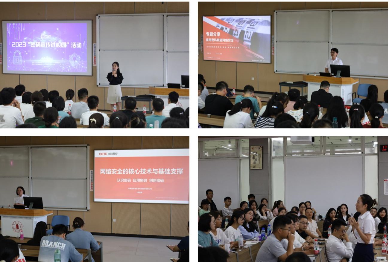 紧接着,豪符密码检测技术(成都)有限责任公司专家深入讲解了密码知识,带同学们领略了国家密码的发展现状,展示了密码创新与融合的趋势,描绘出未来密码的应用场景,并提出行业需求。随后,中电科网络安全科技股份有限公司密码专家从数据安全的角度阐释了密码的重要性,介绍加密方式以及量子时代对密码的新需求。
