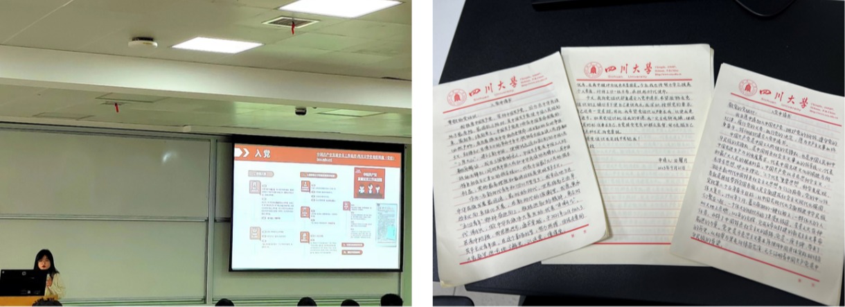 9月7日,辅导员上入党启蒙课,带领新生认真学习党史,详细介绍入党需要具备的条件和需要履行的程序,并接收多份入党申请书。
