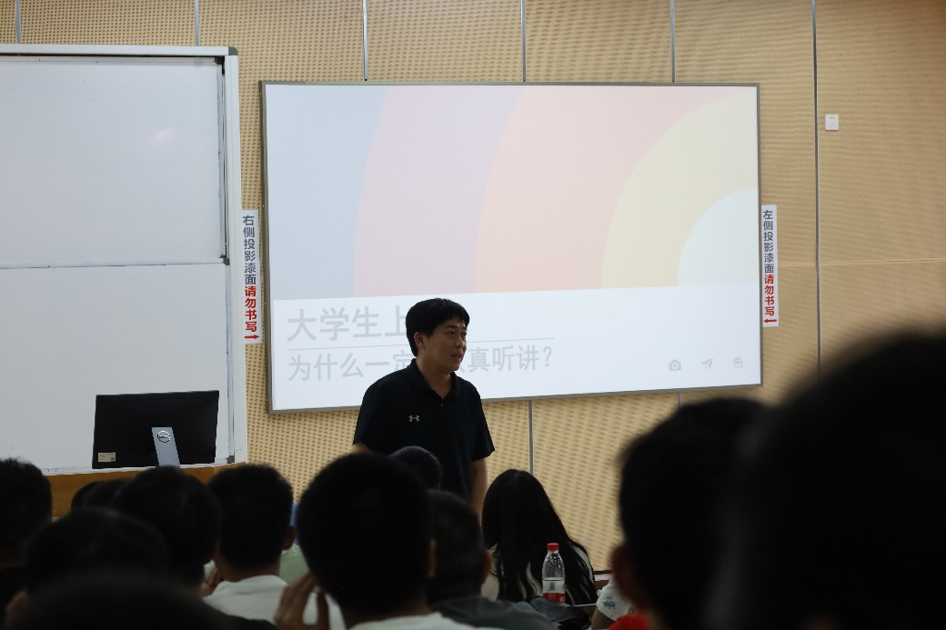 学生科科长黎红友副教授以《大学生为什么要认真听讲》为主题进行授课。