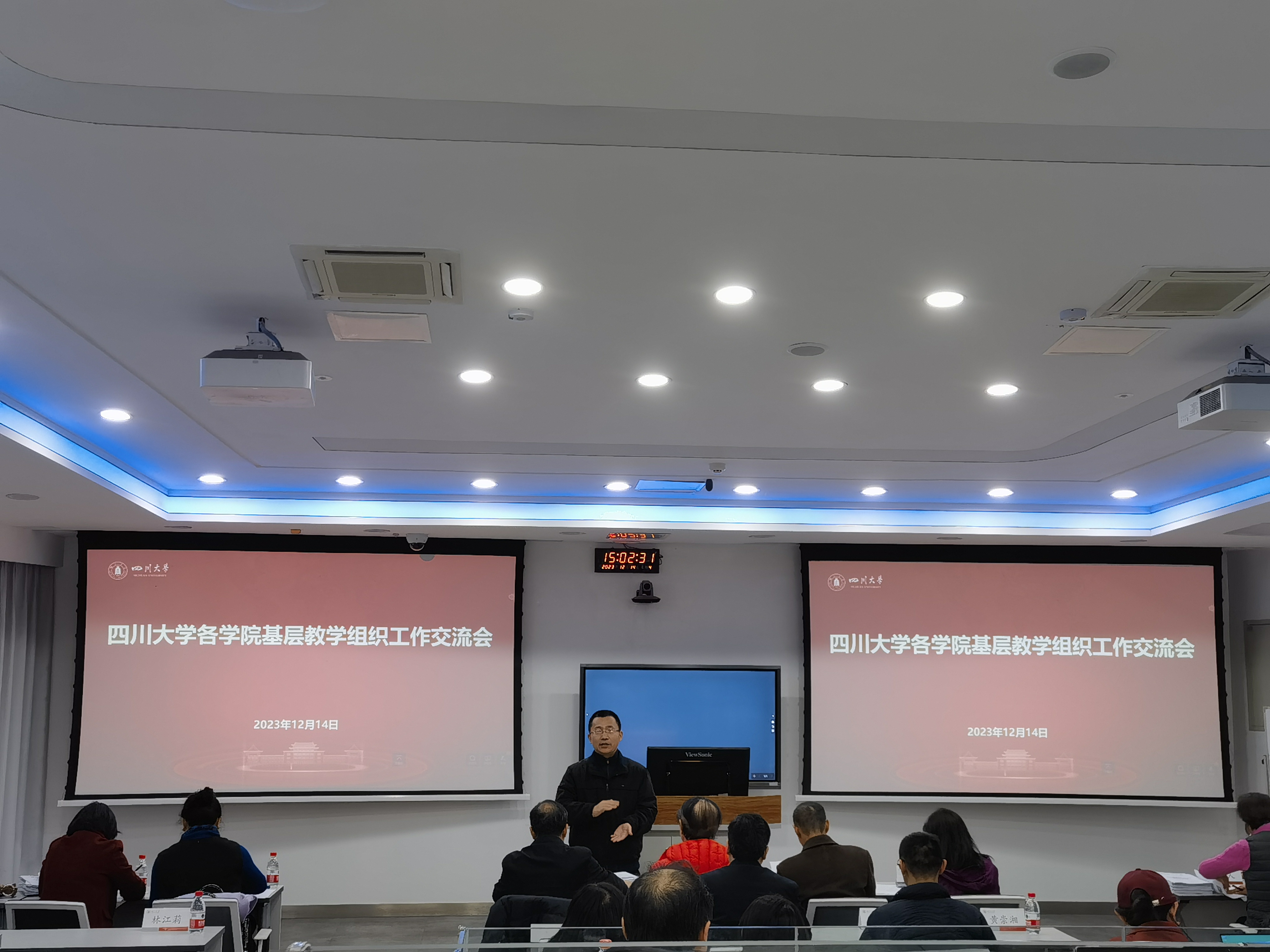12月14日下午和12月15日上午,学校在望江校区基础教学楼C102、C103开展基层教学组织工作交流暨评优活动。各学院(系)教学院长、院督导组、基层教学组织负责人、教学骨干及教学科老师近200余人出席会议并参与了讨论,本次交流会分三场开展。36个学院(系)分别从基层教学组织的顶层设计、队伍建设、开展高质量多样化全覆盖的基层教研活动、督导考核、示范引领等方面进行了汇报与交流,我院副院长杨频教授对我院的情况进行了10分钟的PPT汇报,并接受现场评委提问。经校督导委专家现场评分、集体合议,评选出2023年基层教学组织建设优秀学院:轻工科学与工程学院、马克思主义学院、高分子科学与工程学院、华西临床医学院(华西医院)、化学学院、华西口腔医学院(华西口腔医院)、电气工程学院、华西基础医学与法医学院、网络空间安全学院、水利水电学院、化学工程学院、生命科学学院。