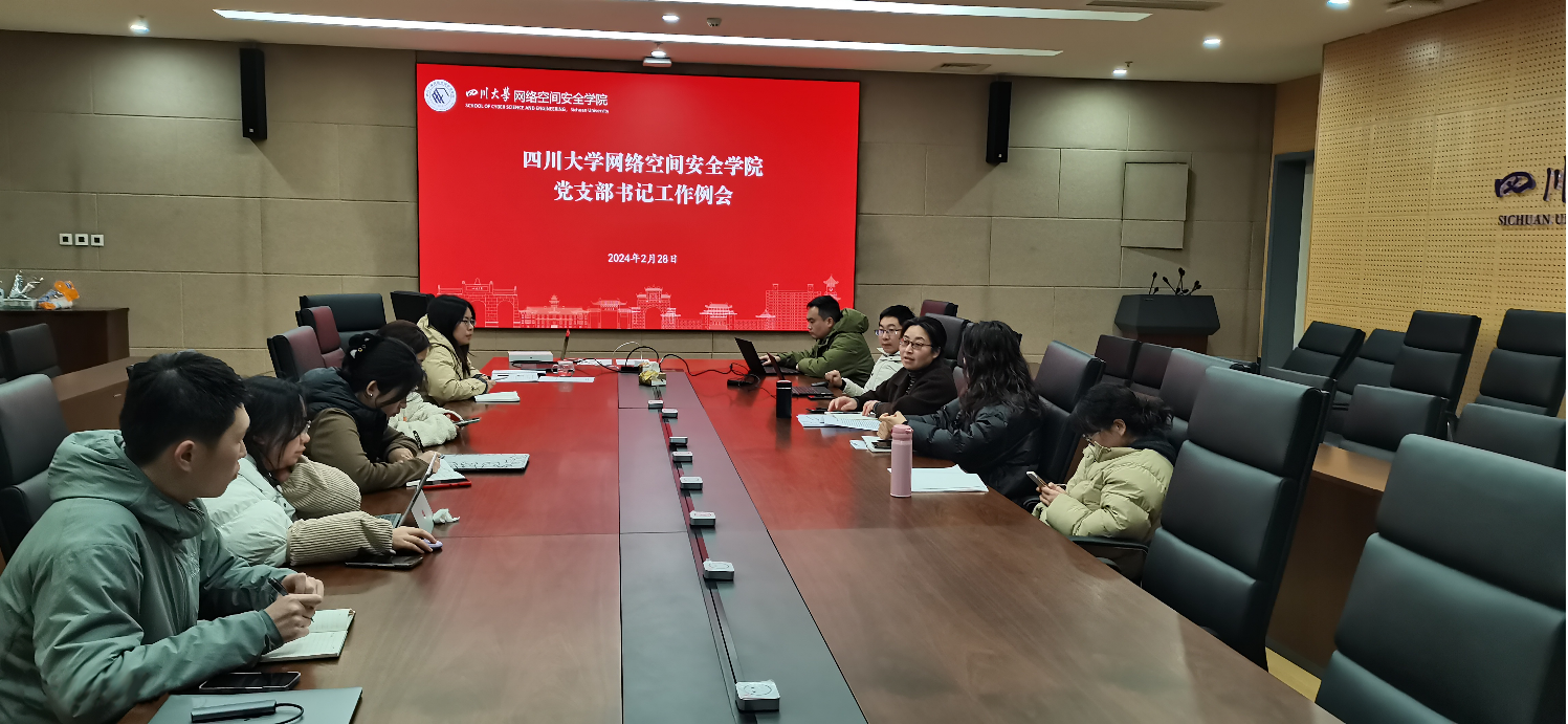 2024年2月28日下午,网络空间安全学院党总支在学院821会议室召开党支部书记工作例会。学院党总支书记秦燕同志、专职组织员及学院各党支部书记参加会议,会议由秦燕同志主持。