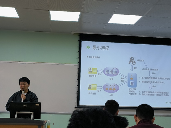 2024年3月19日上午,绿盟科技身份和数据安全技术部技术总监郑彬老师为我院电子信息专业学位硕博士生开展了《技术前沿与专业实践》的第二期讲座,题为“零信任网络”。