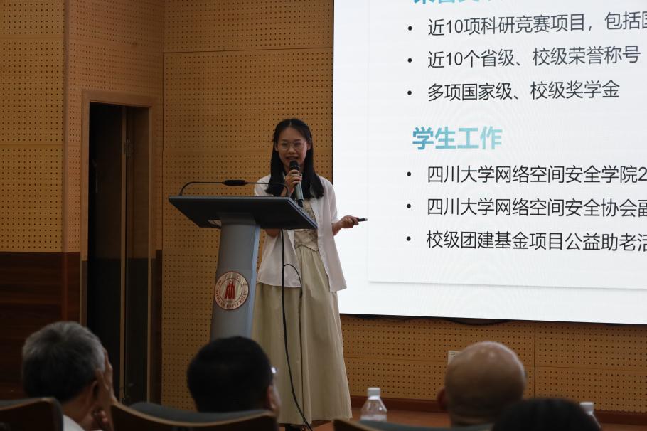 在过去四年的本科生涯中,他们顽强拼搏、追逐梦想,用奋斗和汗水成就自我,为学弟学妹们树立了榜样。在主持人的介绍下,9位2024届优秀毕业生依次上台,进行“网安菁英”风采展示。在讲述中,他们回顾自己的大学成长历程,将曾经面对的挫折、走过的弯路、珍贵的情谊等娓娓道来,并分享他们在学习以及生活中的心得经验。