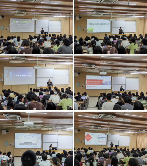 之后六家企业的负责老师依次上台作了企业推介,介绍了各自企业的细分领域及特色,并对安排的实习项目进行了介绍,与同学们分享了实习收获、实习环境等。面对同学的积极提问,各位老师也非常有耐心地进行解答。