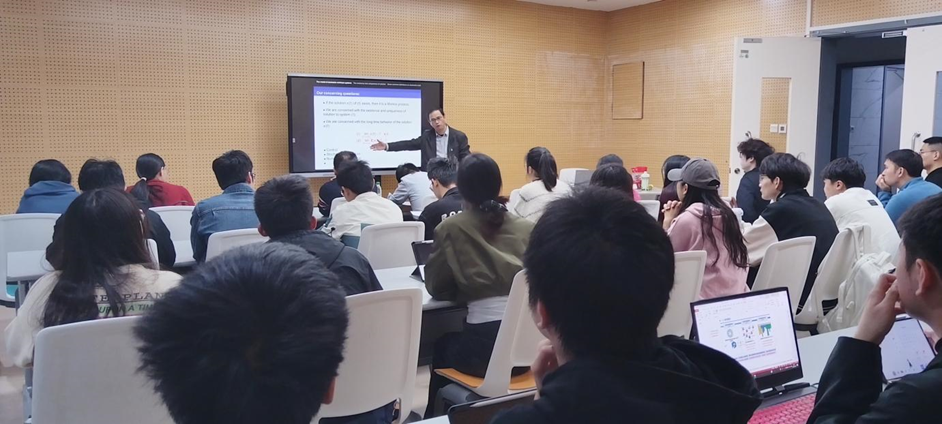 朱全新教授的报告聚焦于学术前沿,以浅显易懂的讲解方式,将复杂的理论概念层层剖析,激发了大家对随机非线性系统稳定性研究领域的探索热情。讲座结束后,朱教授与学院师生进行了深入讨论,并详细解答了大家的问题,极大地拓宽了在场师生的学术视野。