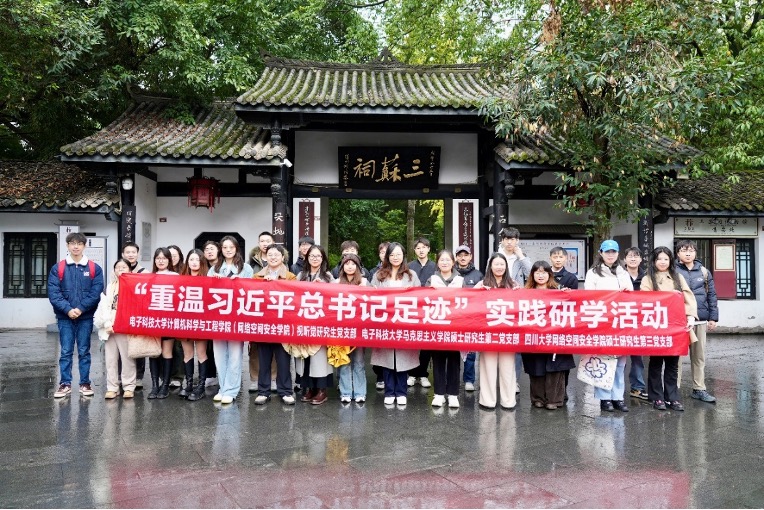 为深入学习贯彻习近平文化思想,汲取文化自信的力量,2024年11月24日,四川大学网络空间安全学院硕士研究生第三党支部联合电子科技大学计算机科学与工程学院(网络空间安全学院)视听觉研究生党支部、马克思主义学院硕士研究生第二党支部沿着习近平总书记的足迹,共同前往眉山市三苏祠开展“重温习近平总书记足迹”实践研学活动。