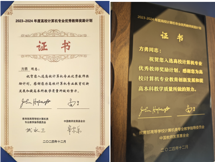 12月7日,第六届中国计算机教育大会(CECC)在厦门召开,会上举行了2023-2024年度“高校计算机专业优秀教师奖励计划”颁奖仪式。经高校推荐、视频提交、进校听课、会议审核等近一年的评审,55名教师从147名参评者中脱颖而出,四川大学网络空间安全学院黄晓明教授成功入选,至此四川大学共有2位教师入选该奖励计划。