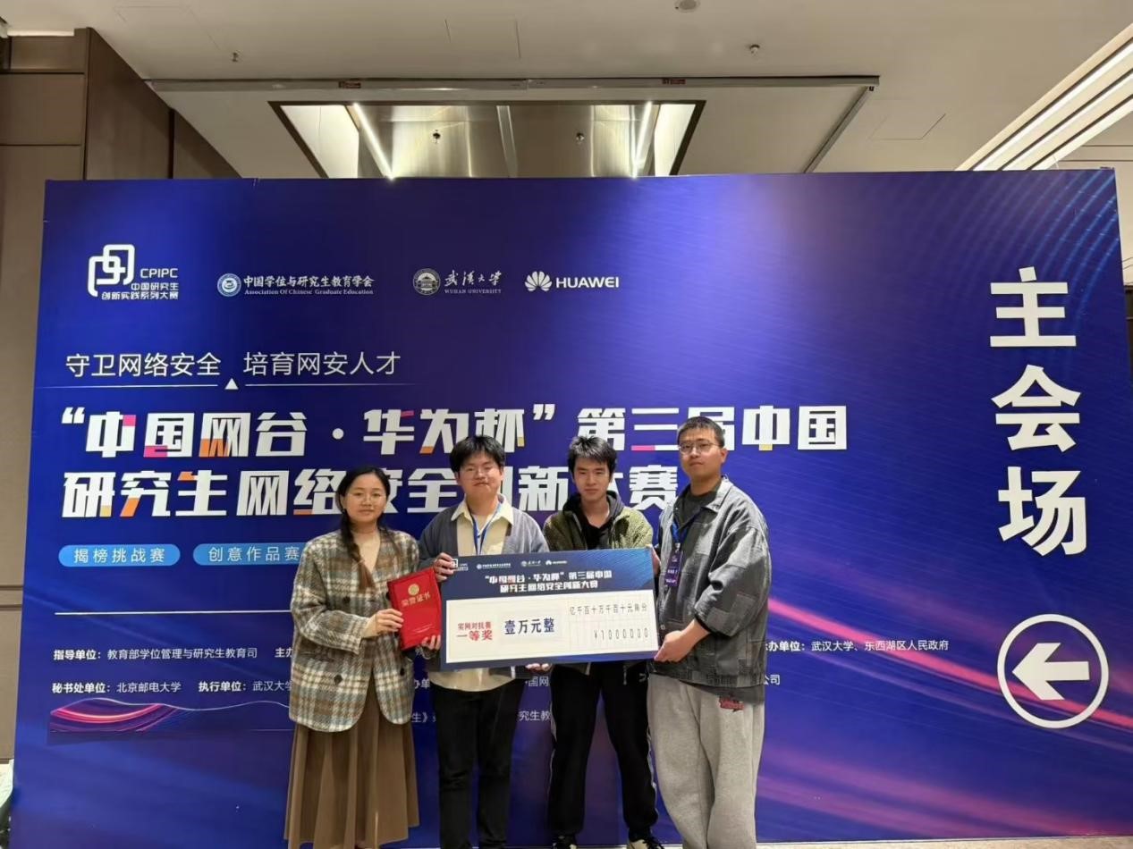 11月16日至17日,“中国网谷·华为杯”第三届中国研究生网络安全创新大赛决赛在武汉市国家网络安全人才与创新基地举行,经过激烈角逐,四川大学0x401战队(团队成员:蒲奥、冯霞、武楷洋、潘炜林,指导教师:黄诚)荣获实网对抗赛一等奖(该奖项全国仅7项),黄诚老师获得优秀指导老师称号,四川大学获优秀组织奖。该成绩均创我校在本赛事中的历史最好成绩。