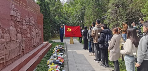 青山埋忠骨,清明寄哀思。为深切缅怀革命先烈、弘扬爱国主义精神,2025年4月3日,四川大学网络空间安全学院硕士研究生第三党支部开展“清明祭英烈”主题活动。党支部全体党员齐聚江安校区明远湖畔英烈碑前,通过历史追忆、集体宣誓、敬献鲜花等形式,在清明之际向为民族解放和人民幸福献出生命的川大英烈致以崇高敬意。