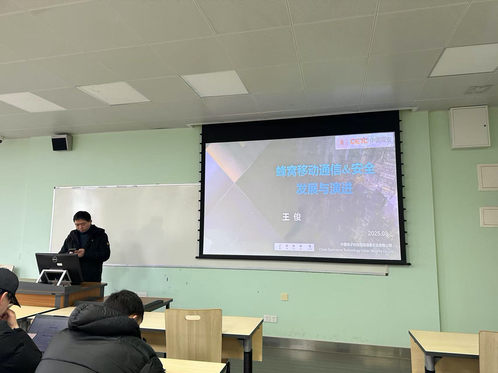 2025年3月18日星期二上午,中国网安/中国电科三十所专家王俊老师为我院电子信息专业学位硕博士生开展了题为“蜂窝移动通信&安全发展与演进”的专题讲座。