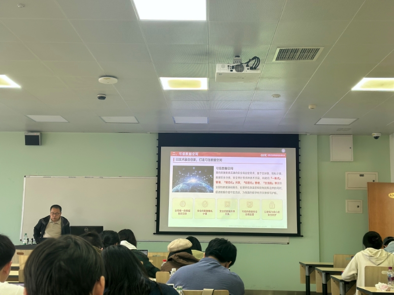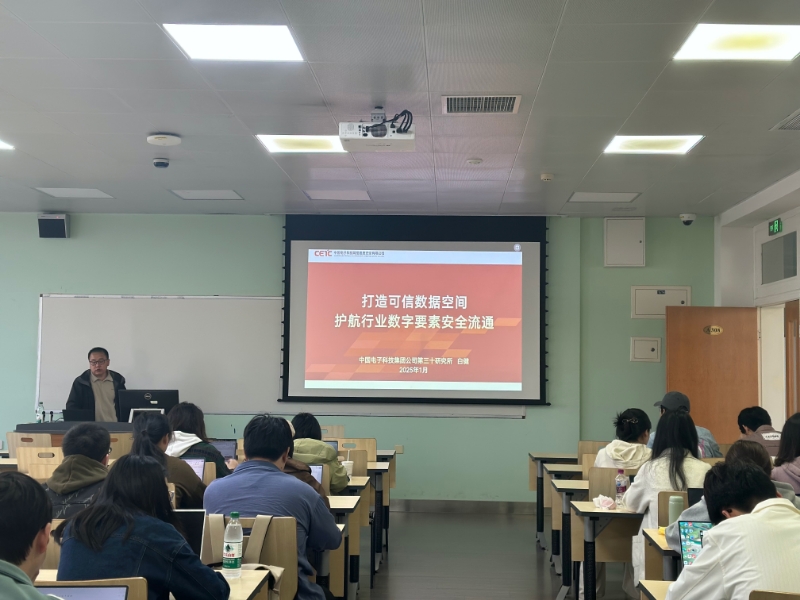 2025年4月8日星期二上午,中国电子科技网络信息安全有限公司技术专家白健老师为我院电子信息专业学位硕博士生开展了题为“打造可信数据空间,护航行业数字要素安全流通”的专题讲座。本次讲座由网络空间安全学院党总支副书记兼副院长张意教授主持。