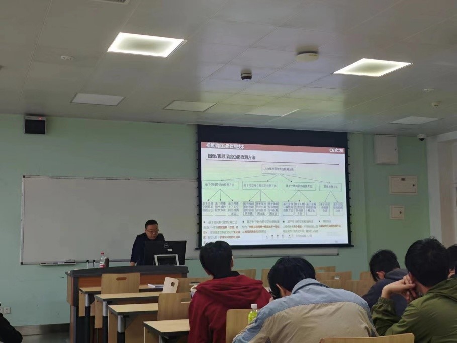 针对深度伪造这一新兴威胁,姜老师重点讲解了“图像/视频深度伪造检测技术”。通过对比基于空间神经网络的局部特征分析方法和卷积神经网络的全局时序检测方法,他揭示了伪造视频在微表情、光照一致性等方面的破绽。结合深度伪造攻击的案例,姜老师演示了如何通过多模态特征融合技术识别AI生成的虚假人像,并强调需建立“技术检测+源头追溯”的双重防御机制。