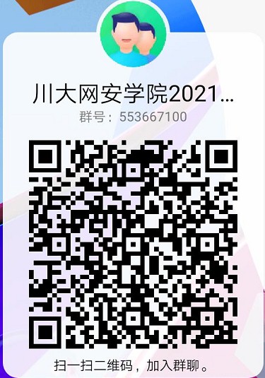 报考者请加入川大网安2021推免硕士”QQ群(群号:553667100,也可扫描以下二维码进入),该群需实名认证,认证方式是姓名-学校