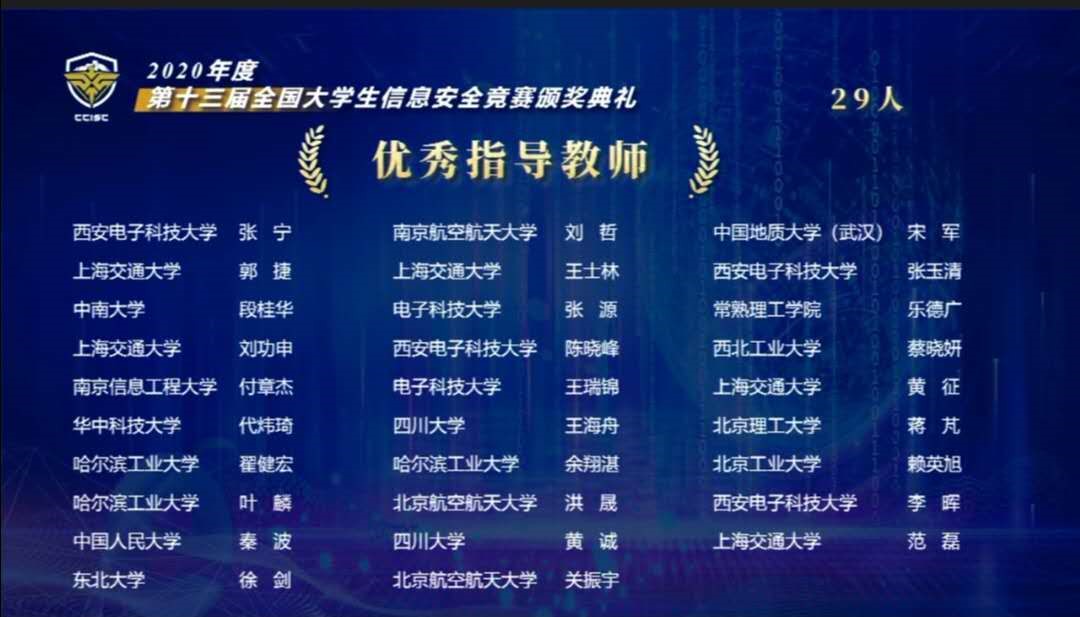 2020年第十三届全国大学生信息安全竞赛作品赛四川大学获奖名单