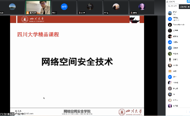 9月5日,学校正式开课的第一天,学院共有9门次课程顺利开课,分别是4门次《网络空间安全技术》、3门次《网络攻防技术》、《网络安全数学基础》、《软件定义网络与高级网络控制编程》。任课教师充分发挥网络教学优势,依托学习通、腾讯会议、慕课等线上平台,开展直播授课,全力保障课程教学质量与进度。老师们准备充分、精神饱满,为呈现更好教学效果,精心制作了教学课件。线上课堂中,学生们热情满满,积极参与课堂讨论,教学效果良好。