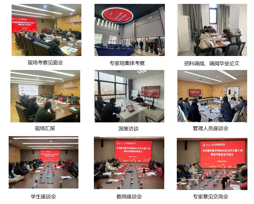 学校本科教育教学审核评估专家组由彭必雨、严斌宇、唐宁九、谢红强、石宵爽五位专家组成,学校教务处副处长冉桂琼、教务处教学质量评估与监督科科长吴雨珊,学院领导班子成员、院长助理、院督导、各系主任、中心主任、各科科长、教务人员、教师及学生代表参加了现场考察工作。