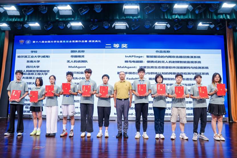 全国大学生信息安全竞赛是由教育部高等学校网络空间安全专业教学指导委员会于2008年发起并主办,全国知名高校轮流承办的一项大学生公益赛事活动。该竞赛旨在培养大学生的创新意识、团队合作精神,提高大学生的信息安全技术水平和综合设计能力,推动我国高校信息安全专业建设,促进信息安全课程体系、教学内容和方法改革,同时也为培养、选拔、推荐优秀信息安全专业人才创造条件。该赛事已连续举办18届,现已成为国内最具影响力的网络空间安全学科领域赛事。本届作品赛共有来自全国195所高校的894支团队、3209名大学生参加。总决赛最终评选出一等奖44项、二等奖66项、三等奖88项,10个单位荣获“优秀组织单位奖”。