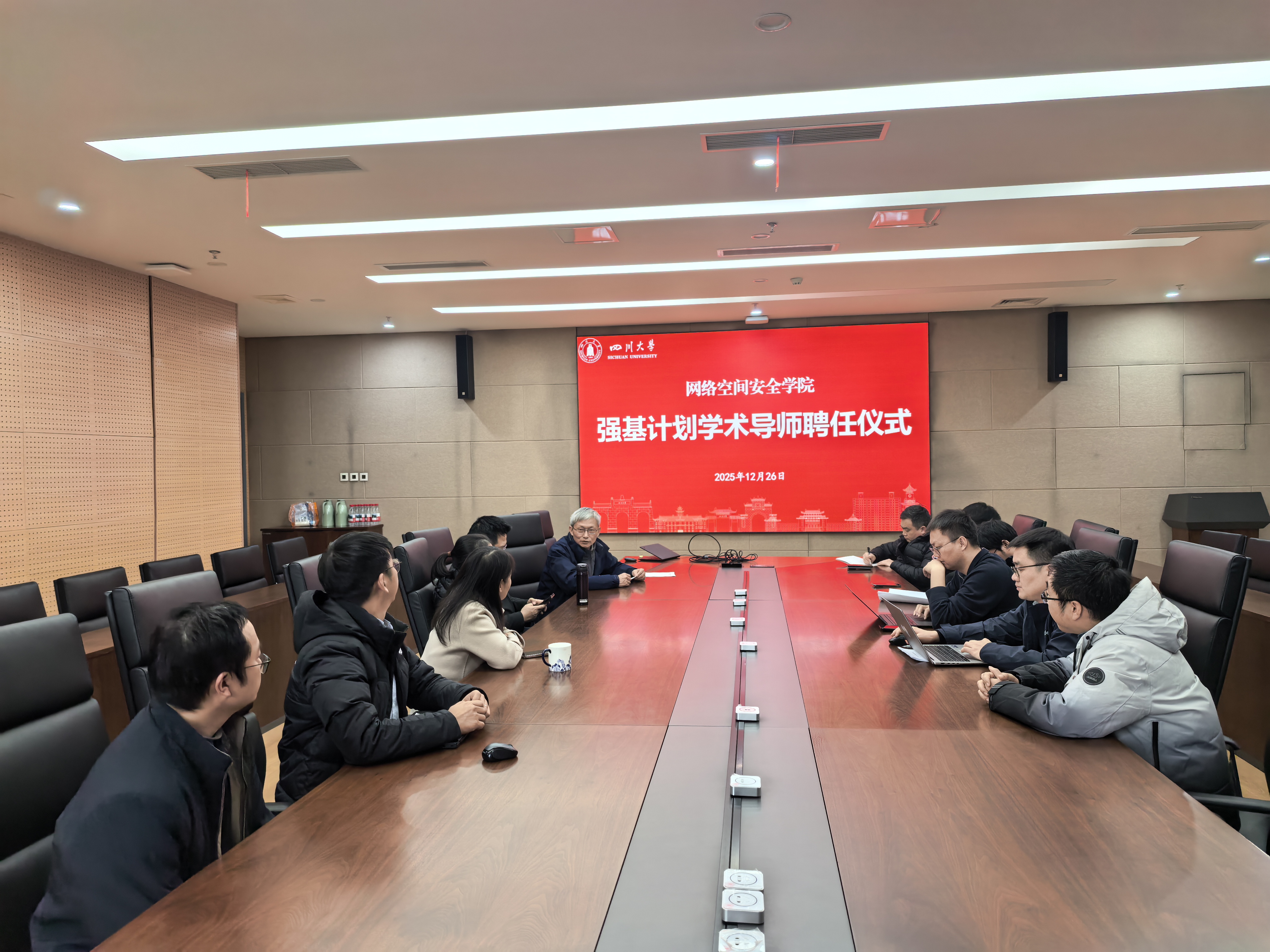 20251226日下午,网络空间安全学院在四川大学江安校区多学科交叉创新大楼821会议室隆重举行强基计划学术导师聘任仪式。学院领导及受聘导师出席,会议由杨频副院长主持。