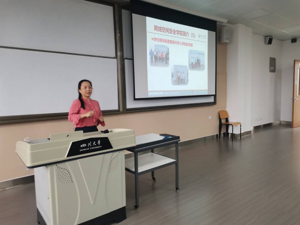 在庄严的国歌声中,此次典礼正式拉开序幕。首先,我院常务副院长陈兴蜀教授从国际网络安全目前的形势、国家对于网络安全的高度重视等方面展开介绍,体现了网络安全的不可或缺。她接着向大家介绍了学院的发展历史、今年首届毕业生取得的成绩,展现了我院深厚的教学实力,鼓励大家努力学习,共建我院辉煌。