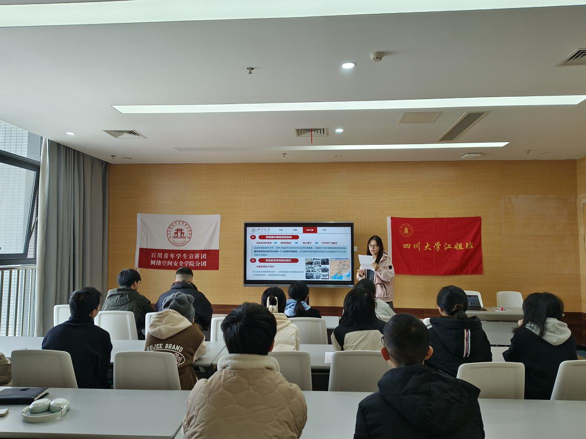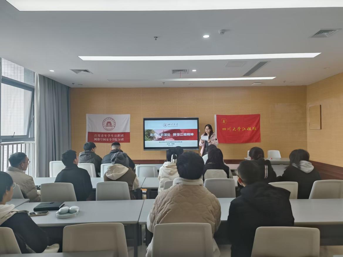为深入学习贯彻习近平总书记关于“要把红色资源利用好、把红色传统发扬好、把红色基因传承好”的重要指示精神,四川大学百川学生宣讲团网络空间安全学院分团组织了“学习革命先辈崇高精神”主题教育系列活动,2024年11月27日,面向网络空间安全学院江姐班开展了“走向历史深处,探寻江姐精神”的主题宣讲活动。