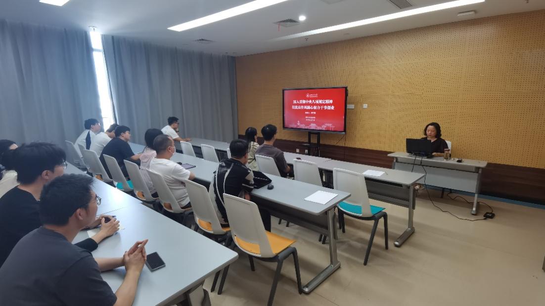 深刻把握学校内容要求。聚焦学校实际,陈院长解读了校党委贯彻八项规定精神的具体内容和要求。结合高教和网安学科特点,她重点强调了在科研经费、学术道德、师生关系、资源使用等方面必须严守的纪律红线和行为准则,要求博士生党员以身作则,发挥先锋模范作用。