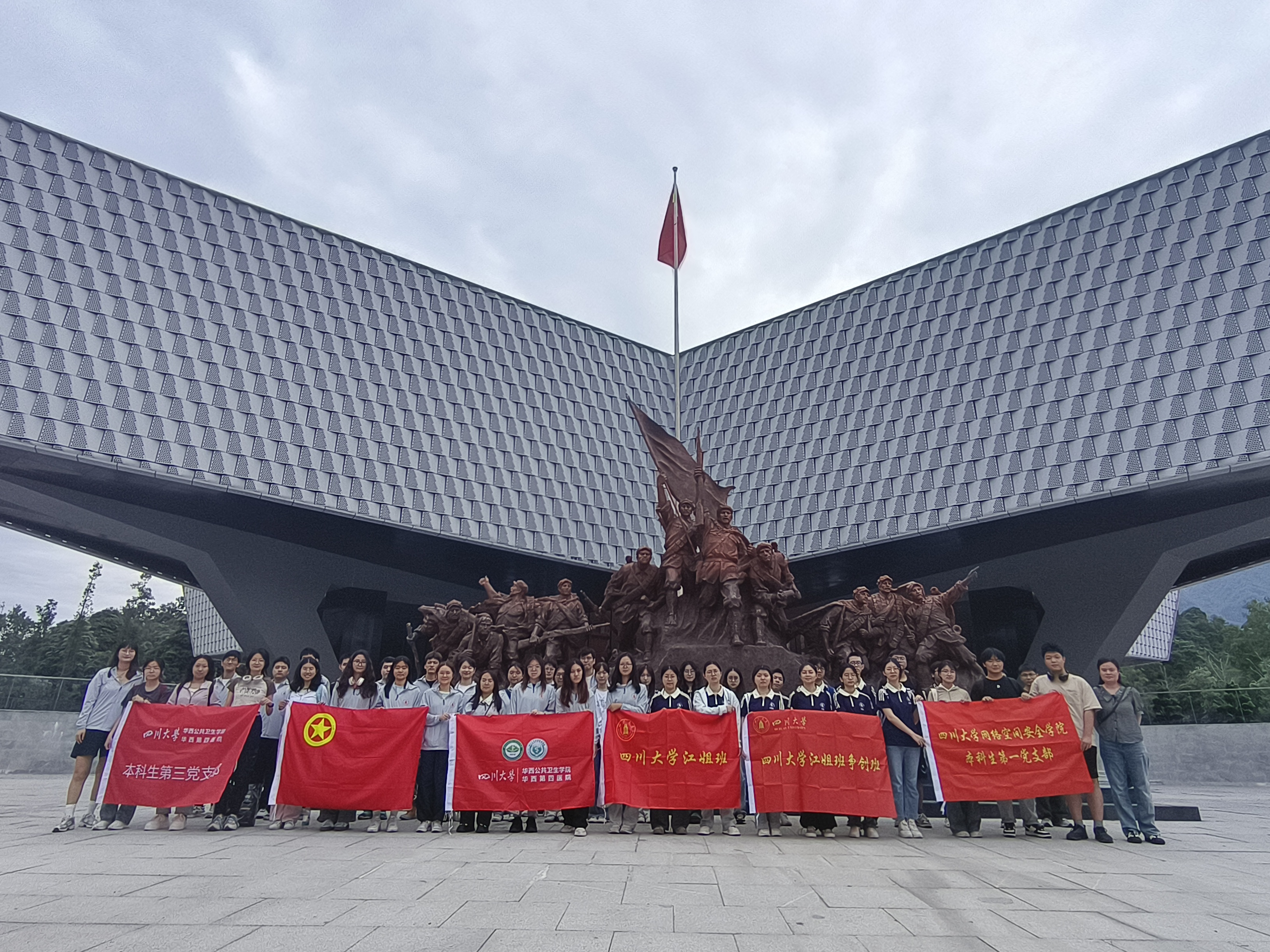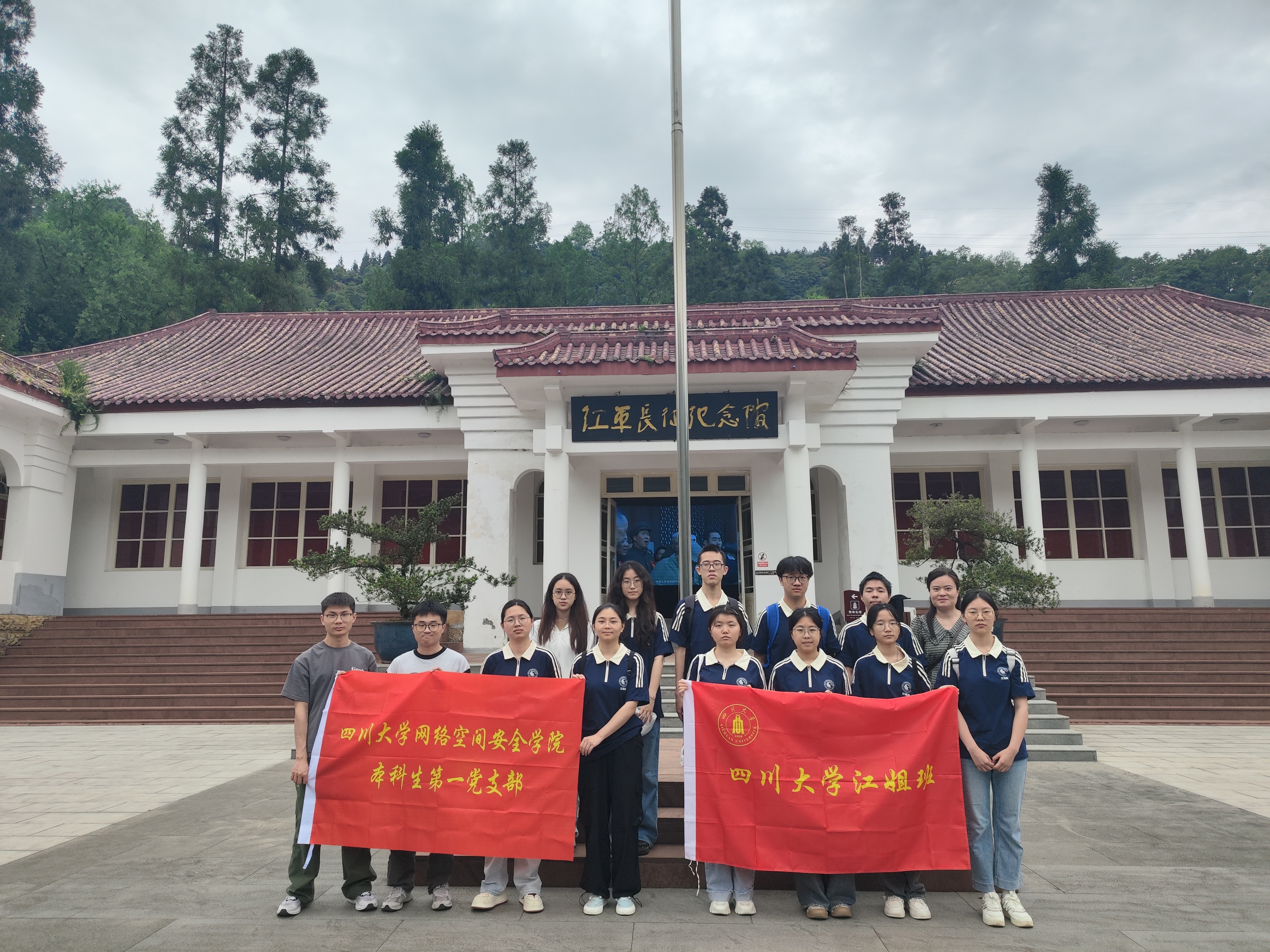 为深入学习贯彻习近平新时代中国特色社会主义思想,赓续红色血脉,厚植爱国主义情怀,2025年5月17日,四川大学网络空间安全学院本科生第一党支部、江姐班联合华西公共卫生学院江姐班以及生物医生工程学院江姐争创班,组织师生前往邛崃红军长征纪念馆开展“追寻红色足迹,传承长征精神”主题党日活动。