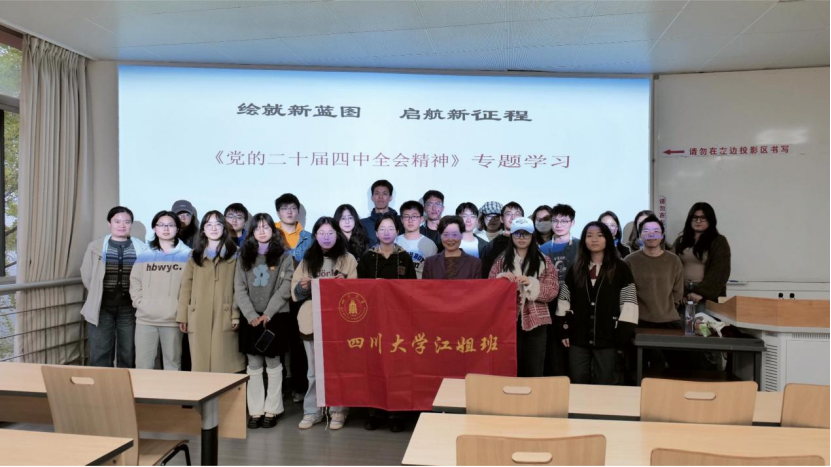 2025年10月31日下午,学校江姐班在江安校区第一教学楼A207联合开展党的二十届四中全会精神专题学习活动。活动特邀马克思主义学院陈文泽教授作专题授课,网络空间安全学院江姐班牵头组织,水利水电学院江姐班、计算机学院和生物医学工程学院江姐争创班,以及百川青年学生宣讲团的同学参加此次理论学习。