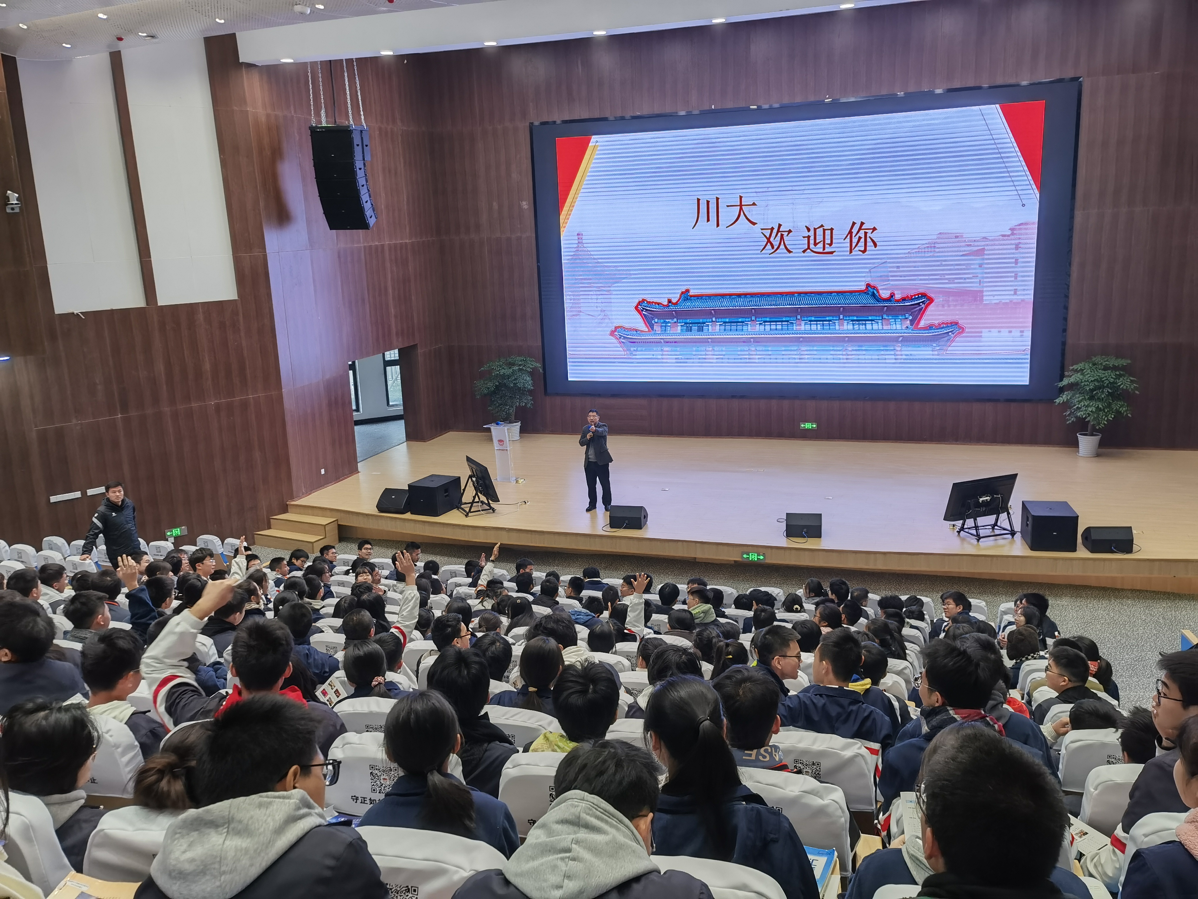 仪式结束后,廖爱民为北二外成都附中的全体高三师生就川大优质专业及入读四川大学的路径进行专题讲座,现场同学们反响热烈,踊跃提问,宣传效果良好。
