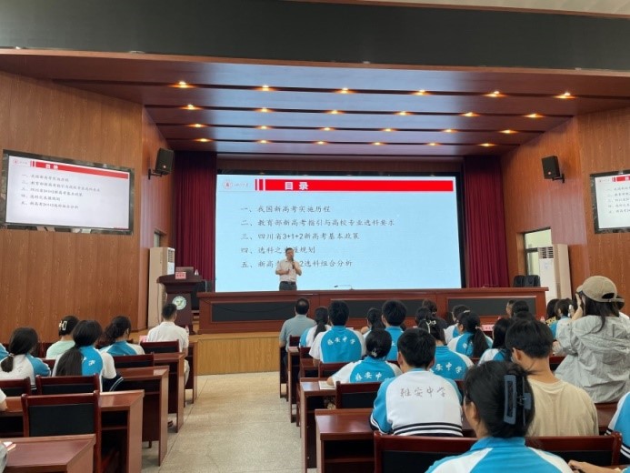 此外,四川大学廖爱民主任还特别为雅安中学的师生们解读了最新的高考政策。他详细讲解了新高考改革的背景、核心内容和实施细则,重点分析了新政策对学生选科、志愿填报和未来职业规划的影响。他强调,面对新高考,学生们需要更加关注自身兴趣和特长,合理选择学科组合,同时要注重综合素质的提升,培养创新能力和实践能力,并提醒在座的教师要及时了解和掌握新高考政策的变化,积极调整教学策略,帮助学生更好地应对高考改革带来的挑战。