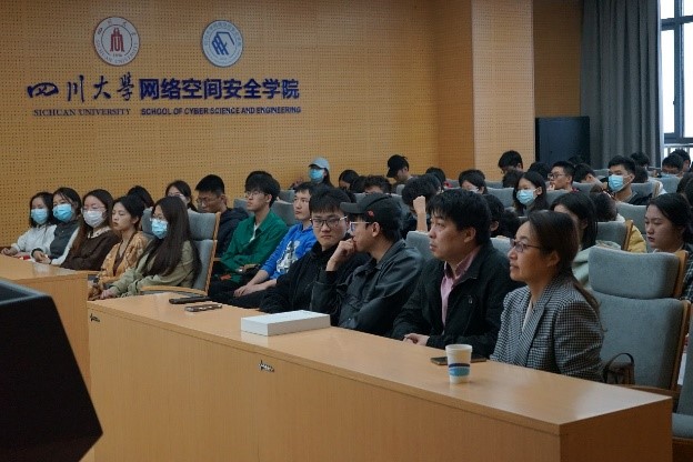 2022年11月25日,网络空间安全学院召开学习贯彻党的二十大精神宣讲会,邀请四川大学党委宣传部陈薇副部长为我院师生作“学习贯彻党的二十大精神积极投身网络强国建设”宣讲报告。网络空间安全学院党总支书记秦燕、研究生辅导员黎红友以及全体硕士研究生党员参加了本次活动。