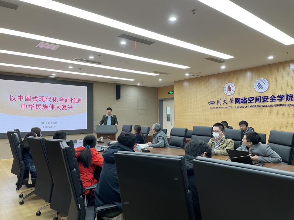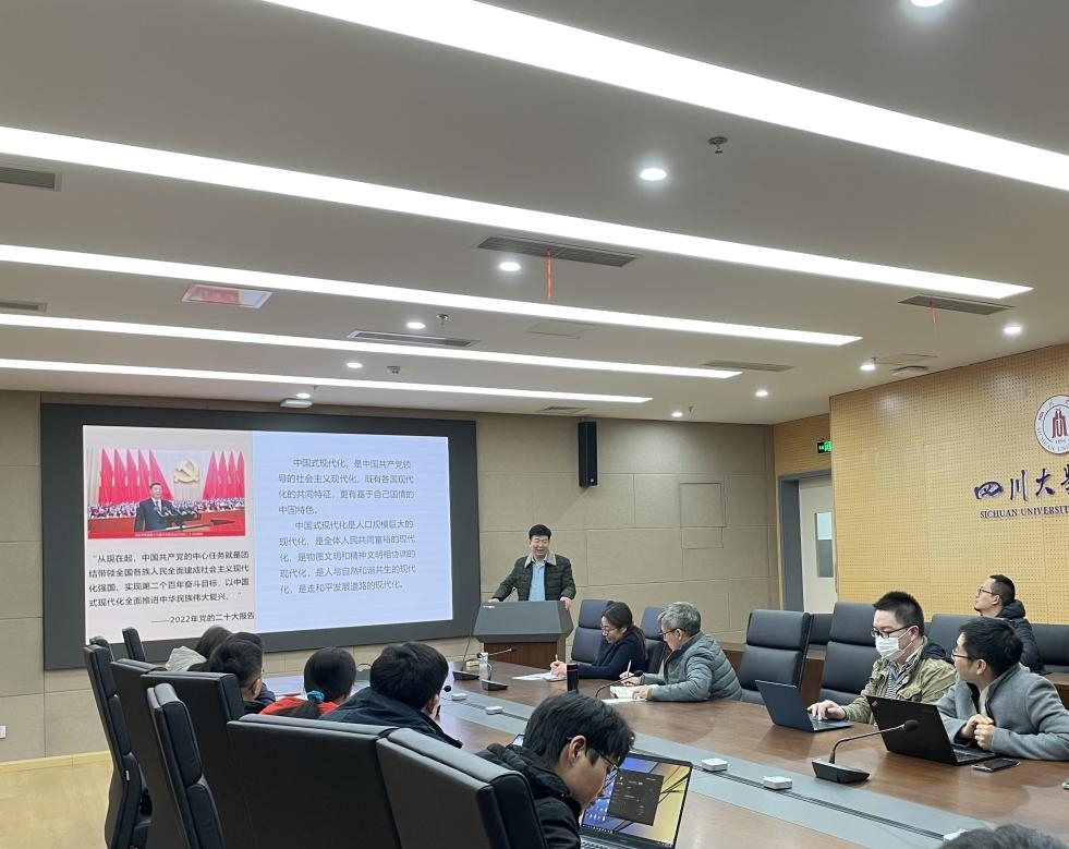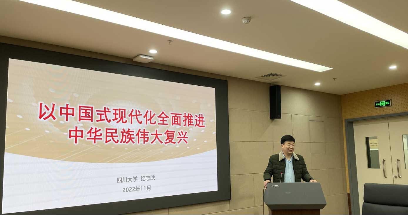 2022年12月2日,我院召开学习贯彻党的二十大精神宣讲会,邀请四川大学学习贯彻党的二十大精神宣讲团成员、马克思主义学院纪志耿教授作宣讲报告,会议由学院党总支书记秦燕主持,全体教职工参加了宣讲会。