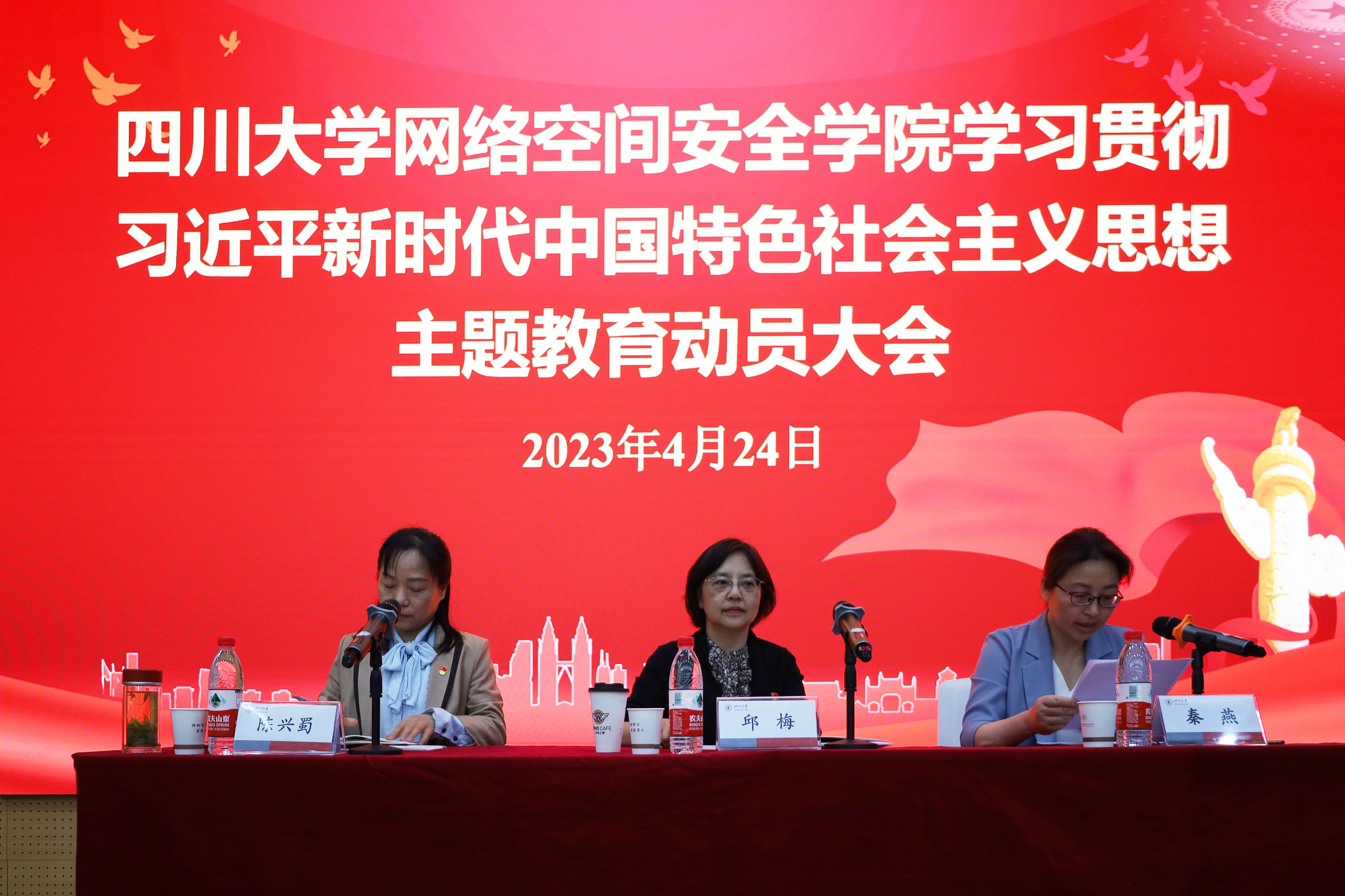 4月24日上午,网络空间安全学院召开学习贯彻习近平新时代中国特色社会主义思想主题教育动员大会。学院党总支书记秦燕同志作动员讲话,学校主题教育第一指导组组长邱梅同志作指导讲话。学校主题教育第一指导组成员、学院全体领导班子成员、教职工党员和学生党员代表参加动员大会。