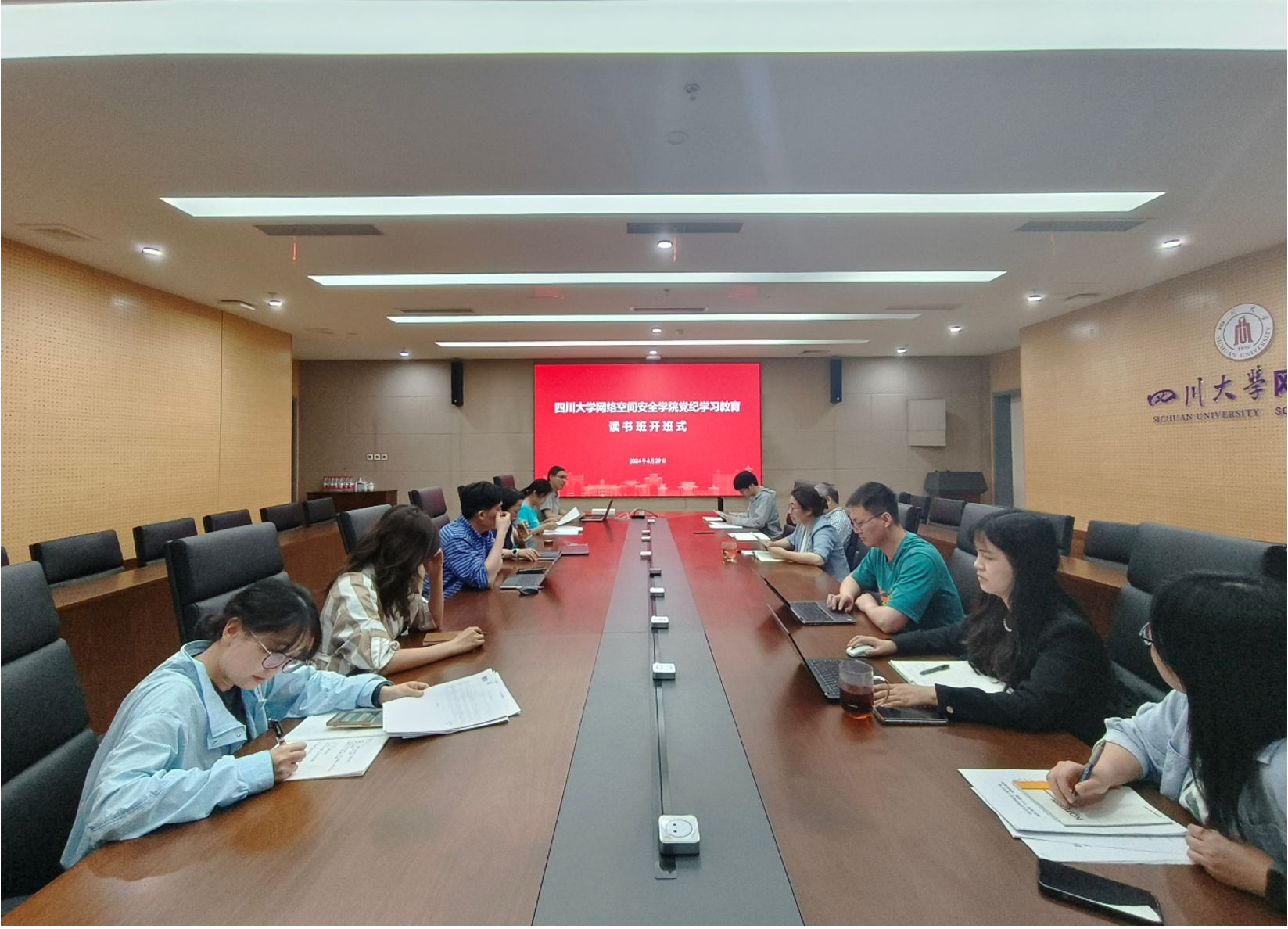 2024429日,四川大学网络空间安全学院在学院821会议室举办党纪学习教育读书班开班式暨学院党总支理论学习中心组(扩大)学习会,学院领导班子、党总支理论学习中心组成员、党总支委员会委员、专职组织员、院长助理、科级干部、有关党支部书记参加,学院党总支书记秦燕主持并作动员讲话。